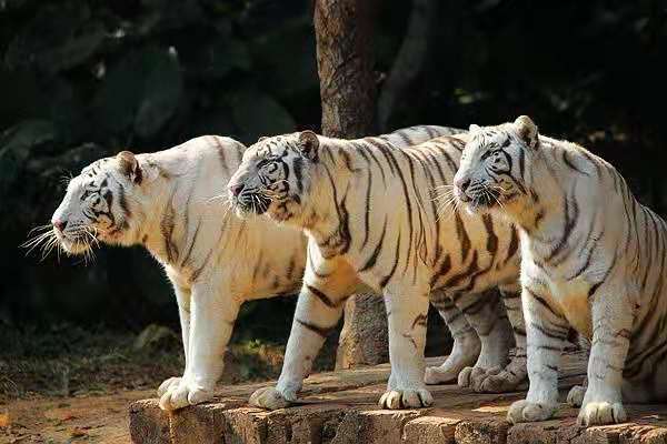 白虎是長隆野生動物世界的鎮(zhèn)園之寶,也是長隆集團(tuán)的吉祥物。目前長隆野生動物世界已經(jīng)擁有超過150多只白虎,是世界上白虎最多的園區(qū),被稱為世界白虎王國也當(dāng)之無愧。除了白虎,還有華南虎、金虎、銀虎以及孟加拉虎和東北虎等六大虎種多達(dá)300多只老虎生活在長隆野生動物世界。生態(tài)虎園在生活區(qū)域住著金虎、白虎、銀虎、孟加拉虎、華南虎以及東北虎等,每個(gè)虎種有自己的單獨(dú)生活區(qū)域,生活區(qū)內(nèi)巨石假山,流水潺潺,百分百的模擬老虎的野外生活環(huán)境。根據(jù)老虎生活習(xí)性的不同,加以細(xì)微的變化,比如華南虎和東北虎的體型和生活環(huán)境都有巨大的不同,所以在場館的設(shè)計(jì)建設(shè)上,也根據(jù)這些差異做到“虎”性化“虎”居,讓老虎們安居長隆野生動物世界。在金虎山則可以目睹世界罕見的金虎、銀虎。
