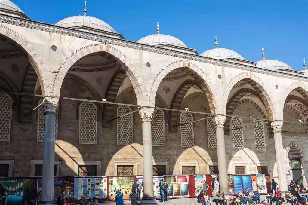 1617年,清真寺完工。它是奧斯曼帝國時(shí)代建筑和藝術(shù)的輝煌杰作。這是拜占庭的希臘文化和奧斯曼土耳其的突厥伊斯蘭教文化相結(jié)合的建筑,運(yùn)用的是拜占庭帝國希臘文化的建筑技術(shù)來表現(xiàn)伊斯蘭教文化,如果沒有四周的六座叫拜塔,那么他就會被看成一座東正教教堂,這也是巴爾干半島上信仰東正教的各國的建筑方式,是拜占庭帝國(東羅馬帝國)所遺留下來的寶貴的非物質(zhì)文化遺產(chǎn)。