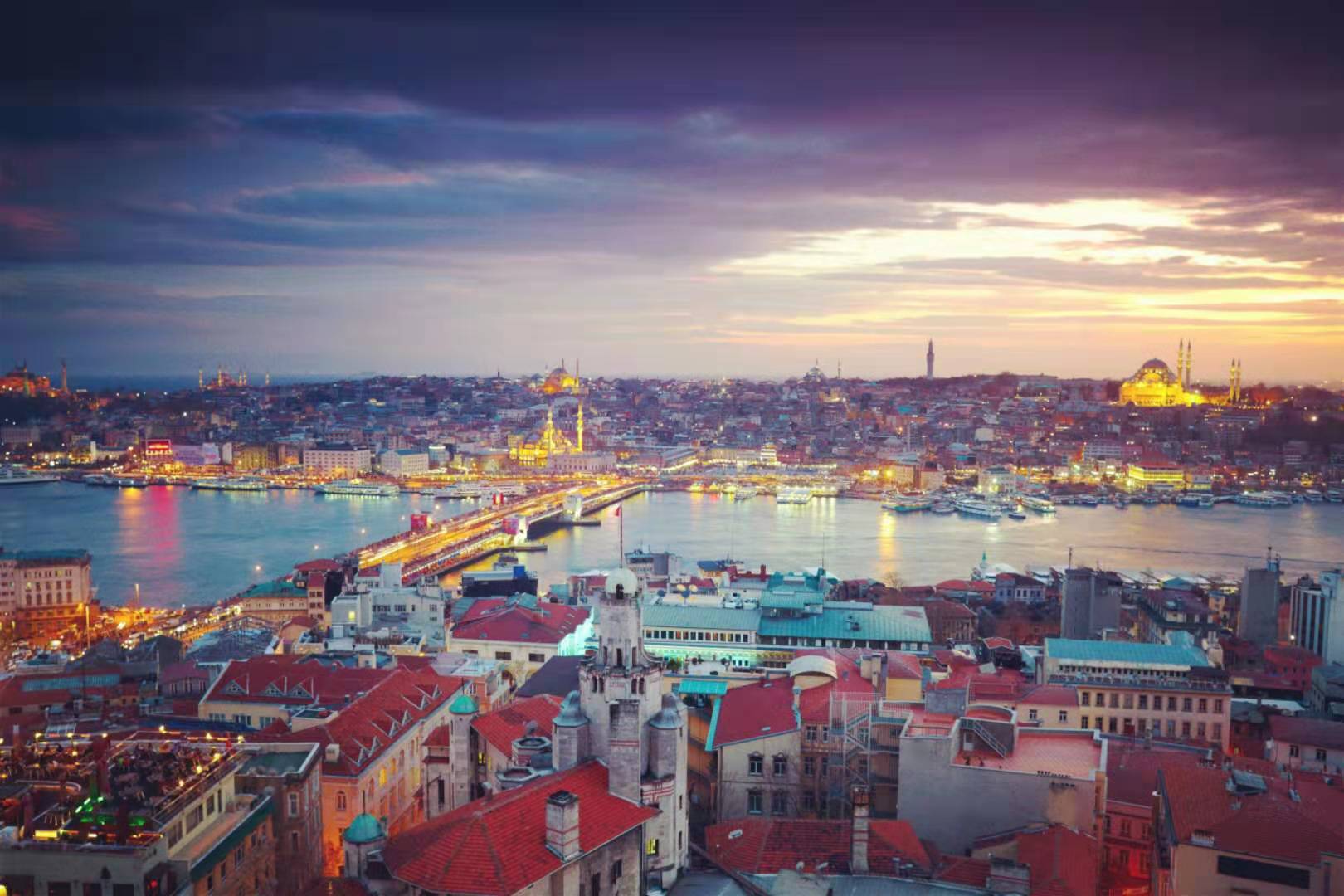 伊斯坦布爾是一個同時跨越歐、亞兩大洲的名城,位于土耳其西北部馬爾馬拉地區(qū),而位于黑海(Kara Deniz)和馬爾馬拉海(Marmara)之間的博斯普魯斯海峽(伊斯坦布爾海峽,?stanbul Bo?az?)及金角灣(Hali)橫貫其中。做為歐洲古代三大帝國──羅馬帝國、拜占庭帝國以及奧斯曼帝國首都的伊斯坦布爾,保留了輝煌的歷史遺產(chǎn),也是土耳其人民值得驕傲的。伊斯坦布爾確實由于豐富多彩的文化遺跡,使游客著迷,其所擁有的博物館、教堂、清真寺、宮殿、市場以及美妙的大自然風光,會讓人們流連忘返。夕陽西下時,佇立在博斯普魯斯海岸邊,當看見對岸的窗戶在落日馀輝的映照下射出的點點桔紅,這時你就會深深理解了若干世紀前的人們?yōu)楹芜x擇了這樣一個非凡的地方,也會由衷地感嘆伊斯坦布爾無愧為世界上最美麗的城市。