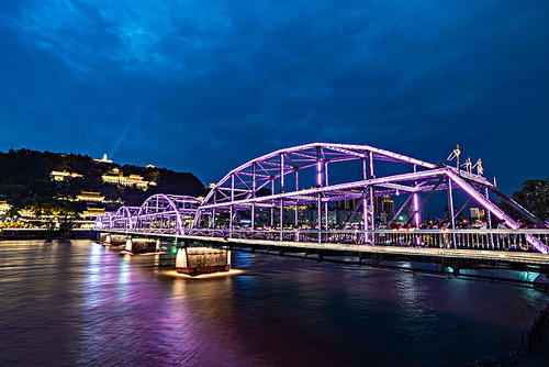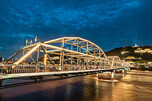 “黃啟炎傳,鐵漢秦章光隴坂;河清海晏,橋虹耀彩衛(wèi)金城。”這座古老的橋梁依然橫跨黃河之上,與白塔山相呼應(yīng)。“舉頭迎白塔,緩步過黃河。對岸兩山峙,中流意興多。”趙樸初的詩句頗能勾出人的游興。和諸多橋梁相比,中山橋的觀賞和紀(jì)念價值似乎比交通作用更有意義。中山橋原名蘭州黃河鐵橋,是黃河上修建最早的鐵橋,素有“天下黃河第一橋”的美稱。位于蘭州市區(qū)中心白塔山下,南接中山路、南濱河路,北連靖遠路、金城路,是蘭州市區(qū)重要交通樞紐工程。中山橋建成后,時為黃河上游和蘭州黃河兩岸唯一的橋梁,方便了兩岸經(jīng)濟生活,加強了蘭州與西北地區(qū)各省的政治.經(jīng)濟和文化交流。在舊中國,與濟南道口鐵橋、鄭州鐵橋同列為黃河上三大橋梁。1928年為紀(jì)念孫中山先生而改稱中山橋,沿用至今。