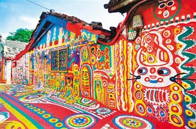 旅游傳奇景點(diǎn)「彩虹眷村」,起源于住在臺(tái)灣臺(tái)中市南屯區(qū)嶺東科技大學(xué)附近有一處舊眷村的八十七歲老榮民黃永阜,因?yàn)椤笩o聊」而拿起畫筆彩將眷村內(nèi)的巷弄街道當(dāng)成了天然的畫布,在上頭彩繪了各式美麗的彩虹線條與可愛動(dòng)物,不僅染亮了小村,在網(wǎng)絡(luò)上引起熱烈討論,更形成一股參訪風(fēng)潮。因他的用色大膽,構(gòu)圖可愛并充滿童趣,讓到訪者有如置身彩虹世界,故網(wǎng)友稱此處為「彩虹眷村」。