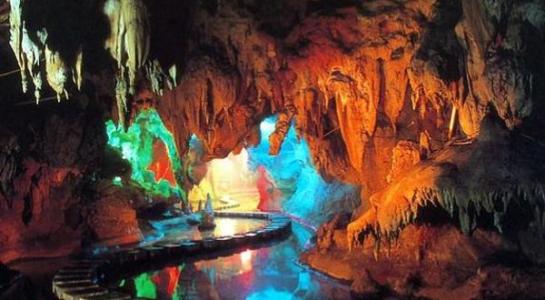 洞中景觀奇異絕頂。石山、石田、石幔、石瀑、石橋、石柱、石旗等景觀,天然自成,比比皆是,恰如天然石景公園。那些諸如“唐僧西行、神象觀潭、觀音坐蓮、王母瑤池、白龍游海、美女照鏡、淑女更衣、金蟾報曉、兄弟稱雄、浪子回頭、猴王探路”等意象景觀,活靈活現,傳神逼真。版權所有山東聊城聊之旅國際旅行社有限公司,轉載必究!尤其那壯觀氣派的“龍宮”,宮中的定海神針,高達29米,比黃龍洞中的定海神針高出1米多,粗幾倍,需幾個人才能合抱。定海神針似雕花門柱,石花燦爛,玉樹瓊花,其景其勢,國內一絕。洞府中還展示了大自然“三界”。“洞府植物界”,洞中遍生石樹、石筍、石藤、石草、石花、石葡萄,種類繁多,可謂植物標本園。“洞府動物界”,有意象中的諸如天上飛的、水里游的、陸地跑的,千姿百態(tài),栩栩如生。這里還曾是古生命的搖籃,洞中有古河床,殘存著45萬年前的貝殼;還有5萬年前的動物腿骨化石,考古專家鑒定那是鹿和豬的骨頭。“洞府非生物界”,無所不有,奇景萬千。石梯田、石壩列列在目。那石幔從“天棚”順著高高的洞壁飄然垂下,高達13米,恢宏大度,勢如瀑布。它更象劇場幕布,任由大自然的鬼斧神工或拉開或閉合。專家們認定,這石幔是中國的唯一,也是亞洲的唯一。還有那乳石音樂更是一絕。形狀各異的鐘乳石,有的成片從洞頂一瀉而下,似瀑布從天而降,洶涌澎湃;有的懸掛在洞壁,象成熟的瓜果;有的從頂棚垂掛,狀似葫蘆一字排開,長短不一卻錯落有致。在這些乳石集中的一個地方,人們用木棒輕輕地敲擊乳石,可以發(fā)出不同的音符,可以敲出悅耳動聽的音樂。要是高手,還可以敲出樂曲來。倘若詩圣杜甫聽此樂聲,定會將七絕《贈花卿》末句改成:“此曲只應洞中有,人間難得幾回聞。