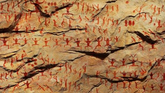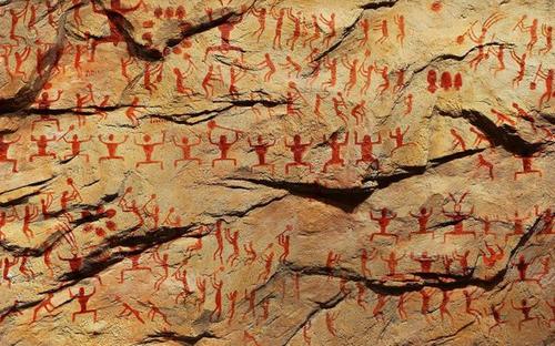 令人稱奇的是,經(jīng)歷了如此久遠(yuǎn)年代的風(fēng)吹日曬雨淋,壁畫的顏色仍然非常鮮艷,不知先民們是用什么顏料作畫的?在如斧劈刀削般、高聳險(xiǎn)峻的崖壁上,這些圖像又是怎么畫上去的?“是誰揮得筆如椽,乾坤寫此大詩(shī)篇”;“鬼斧神工輸技巧,風(fēng)吹雨打猶鮮妍”——這是古人對(duì)花山巖畫的感嘆,也提出了讓人百思不得其解的兩個(gè)疑問。