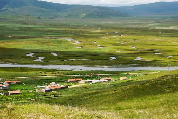 郭莽濕地位于甘肅省碌曲縣尕海鄉(xiāng)213國道旁,海潑3562米,是黃河最大支流洮河的發(fā)源地和水源涵養(yǎng)地,在黃河流域生態(tài)涵養(yǎng)和水源保護中具有重要意義。郭莽濕地是一個開放式免費景點,就在公路邊。草地上一條500多米長的木棧道通往觀景臺,站在觀景臺上,眼前彎曲的小河,傍水而居的藏族小村莊,風輕日朗,白云朵朵,綠草如茵經(jīng)幡飄揚,好似一幅美麗的生態(tài)畫卷!