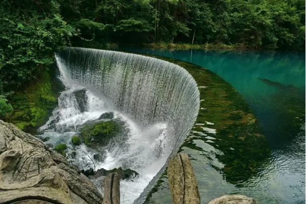 犀牛潭是九龍河大瀑布下面的最后一個(gè)潭,從這個(gè)潭開始,就是站在大瀑布上可以一收眼底的一目十瀑。從以堵勒村及鴨子龍?zhí)哆^河對(duì)岸,就從潭上邊河床上的蛤蟆石走過。這個(gè)潭也不大,但就是怪,有時(shí)從上邊流下來的水是清的,可再從潭里流出來,就變成了渾的。老輩人說:“那是正好碰上犀牛翻身哩!”