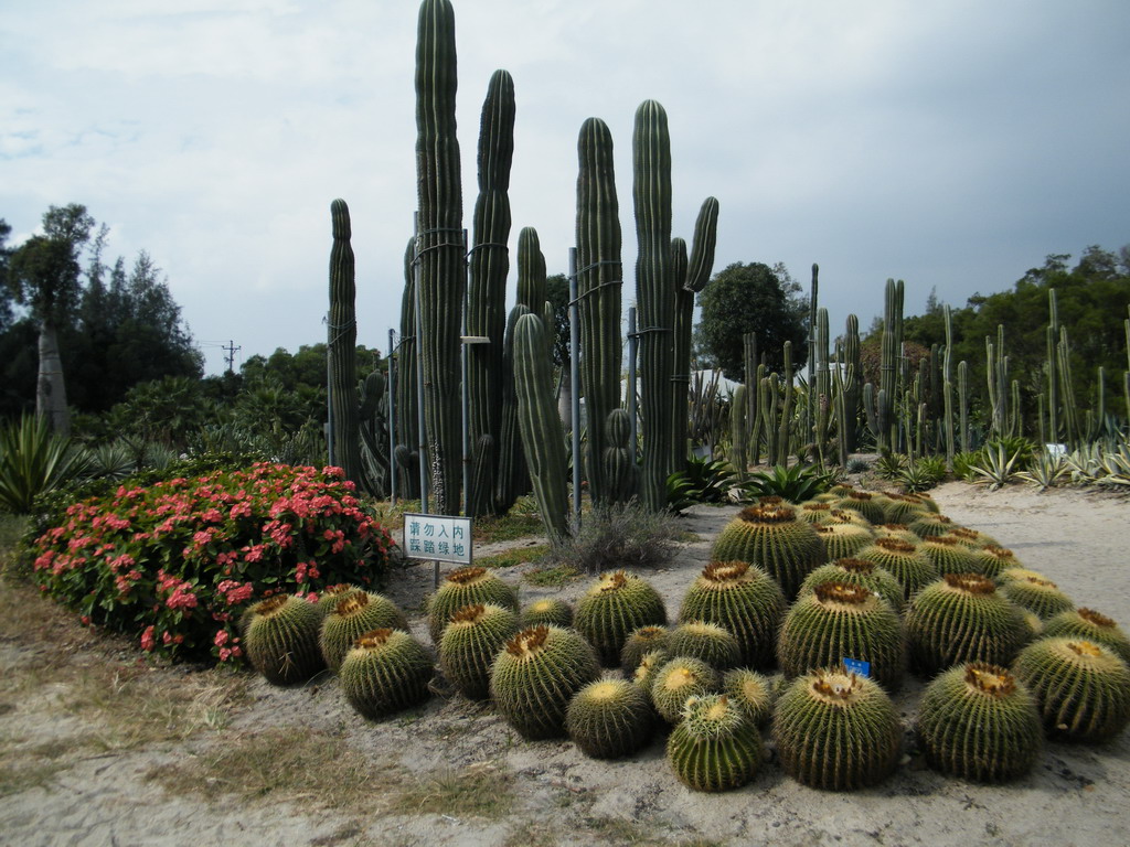 沿環(huán)山公路行至半山腰,便是仙人掌世界。占地面積4萬平方米,主展區(qū)含室外展區(qū)和展覽溫室兩大部分。室外展區(qū)的大型多肉植物和仙人掌類雄偉壯觀,在室外進行大規(guī)模的仙人掌植物造景,這在國內(nèi)還是第一次。這里有從澳大利亞引進的形如巨瓶的瓶干樹,體型高大的象腿樹、酒瓶蘭、露兜樹和各種仙人掌:展覽溫室里形態(tài)各異的仙人掌與多肉植物爭奇斗艷,這里有國內(nèi)自行栽培最大的,在全國首屆花博會、香港花卉展覽和昆明世界園藝博覽會中屢獲殊榮的金琥王,有國內(nèi)罕見的鬼、神仙玉、龜紋木棉、青紫葛、武倫柱,還有從南非引種的生石花、棒葉花等小巧玲瓏、親親可人的多肉植物小盆栽,展示出一個琳瑯滿目的仙人掌世界。
