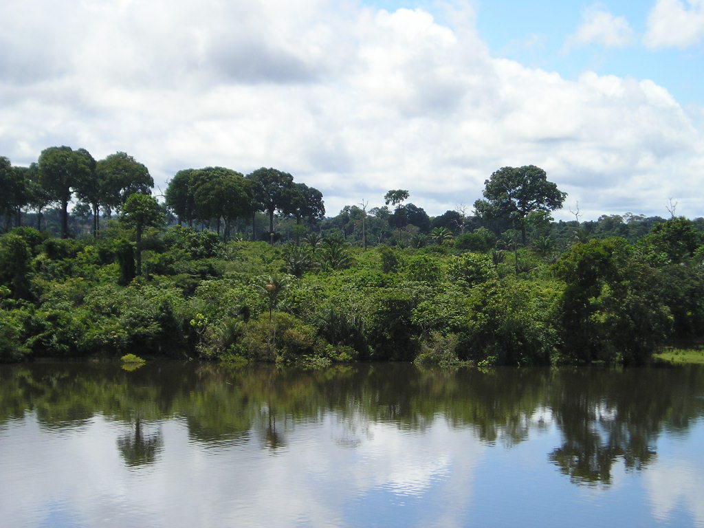在下游興古河對(duì)面的北岸有許多平頂?shù)男∩剑诱勾蠹s有240千米。興古河以上的南岸是阿勒格爾山,一路的峭壁約束著亞馬孫河的河岸,直到圣塔侖,然后折向西南,形成另一條支流塔帕若斯河的河谷。