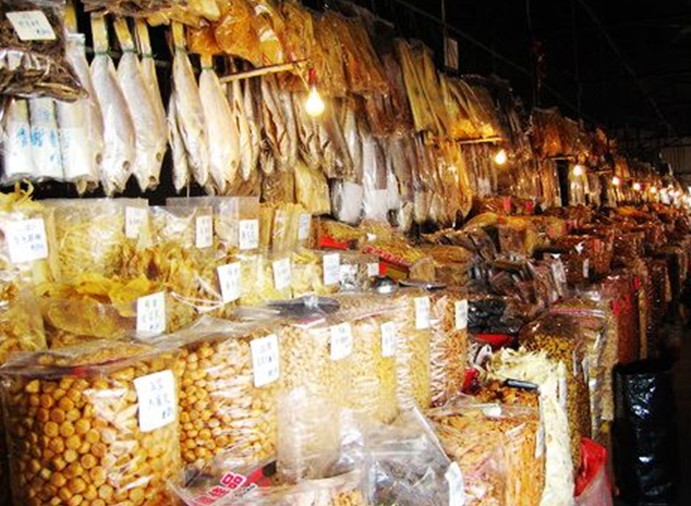 灣仔海味市場位于灣仔碼頭對面,這里地方十分整潔,鋪位排得十分整齊,數(shù)目不下百個,主要經(jīng)營海味干貨,如魚翅、鮑魚、海參、咸魚、瑤柱、魷魚等。大部分干貨是從外地進(jìn)口,除了海味干貨以外還有一些小飾物如珍珠項鏈、奇形貝殼、特色耳環(huán)等。 由于這個市場具有濃厚的地方特色,且與澳門隔河遙望,所以每天都吸引到大批游客探訪拍照留念。