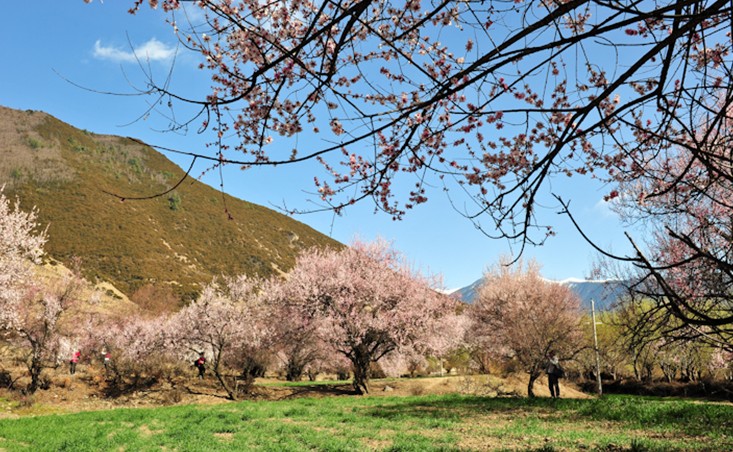 在林芝縣城東南方向約5公里處,有一片天然野生桃林,人們稱它為桃花溝。桃花溝三面環(huán)山,高處有水源,四周林木蔥蘢,終年碧綠蒼翠,間有流水,清澈見底;溝內(nèi)野桃鱗次櫛比,林間鳥雀歡噪,既靜僻又幽雅,不失為一處難得的大自然樂園和桃的砧木基地。