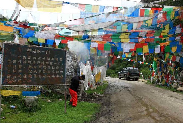“拉姆拉錯”藏語意為“圣母湖”,又稱拉姆納姆錯、郎龍錯。面積約1平方公里,略呈橢圓形。拉姆拉錯周圍為谷壁陡削、山脊狹小的刀刃狀峰脊(刀脊)環(huán)抱,上為強(qiáng)烈寒凍風(fēng)化形成的巨石巖屑坡。版權(quán)所有山東聊城聊之旅國際旅行社有限公司,轉(zhuǎn)載必究!站在海拔5350米拉姆拉錯源頭后壁刃脊上俯看朝拜拉姆拉錯神湖,神湖猶如一面頭蓋骨形的鏡子,鑲嵌在群峰之中。傳說,神湖能呈現(xiàn)每一個去朝拜神湖者未來的各種景象。西藏歷代達(dá)賴?yán)锏霓D(zhuǎn)世靈童都是在神湖的啟示下尋找的,而且每代達(dá)賴?yán)锒家缴窈菀淮巍?/p>