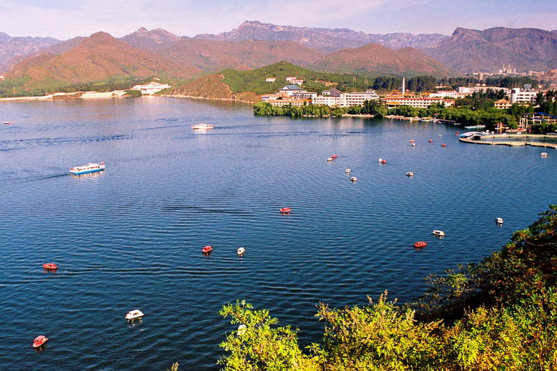 雁棲湖旅游區(qū)距懷柔縣城8公里,因每年春季有成群的大雁、仙鶴等珍禽候鳥在此棲息,故而得名。湖區(qū)氣候宜人,湖水清純碧藍(lán),是開展水上娛樂活動(dòng)和休閑度假的理想場(chǎng)所。雁棲湖三面環(huán)山。北面群山綿亙、重巒疊嶂,萬里長(zhǎng)城隱現(xiàn)其間,西面有紅螺寺,南面有一望無際的華北平原;東岸有元寶山、金燈山。登山遠(yuǎn)眺,藍(lán)天碧水,綠野田園,壯麗景色盡收眼底。