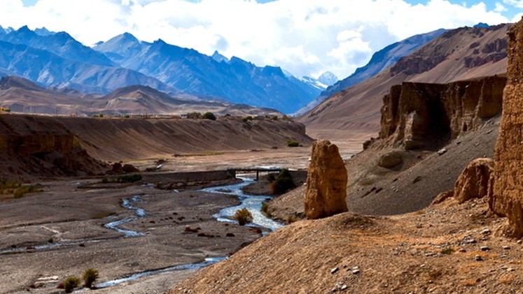 孔雀河谷地帶景色優(yōu)美,四周雪峰峻峭,雪峰下是風(fēng)化的礫石和黃沙形成的堆積層,起伏有序,溝壑縱橫。來(lái)自孟加拉灣的海洋季風(fēng)越過(guò)喜馬拉雅山吹到這里,形成了青藏高原難得一見(jiàn)的濕潤(rùn)氣候,大片的綠洲似翡翠般鑲嵌在孔雀河谷,錯(cuò)落有序的村莊,繚繞的炊煙,趕著牛羊的牧童和轉(zhuǎn)經(jīng)的老人,使人仿佛到了一個(gè)世外桃源,就像傳說(shuō)中的香格里拉。