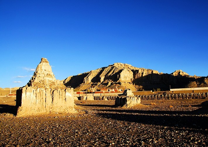 托林寺旁的象泉河谷里,有一列長達數(shù)百米的上百座佛塔遺跡。另外,在河谷觀看扎達土林壯觀迷人的日出和日落也是難得的享受。