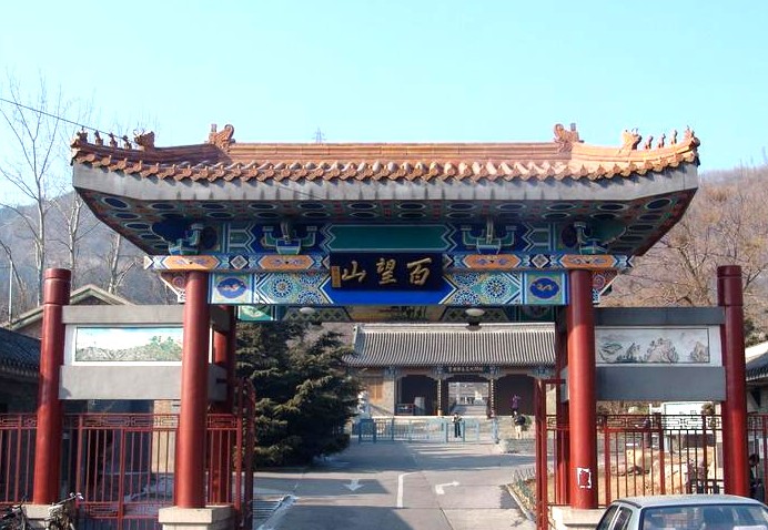 《長安夜話》有云:“百望山南阻西湖,北通燕平。背而去者,百里猶見其峰,故曰‘百望’”。百望山屬太行山余脈,是太行山延伸到華北平原最東端的山峰,故有“太行前哨第一峰”的美稱。百望山又名望兒山。因山下有兩個村莊東北望(旺)、西北望(旺)而得名。傳說楊六郎與遼兵曾在山下大戰(zhàn),佘太君登山觀戰(zhàn)為六郎助威,因此又叫“望兒山”,保留有佘太君廟、教子臺等遺跡。望兒山海拔210米,是太行山山脈延伸華北平原最東端的一個山峰。登高遠(yuǎn)望,東面是現(xiàn)代化的樓群,山后則是林網(wǎng)密布,十里麥香。一九三七年,百望山爆發(fā)了黑山扈抗日戰(zhàn)斗。由中國共產(chǎn)黨地下工作者領(lǐng)導(dǎo)的國民抗日軍與日軍英勇搏斗,擊落敵機一架,打死日軍多人。為了紀(jì)念此次戰(zhàn)役,楊成武將軍題寫“黑山扈抗日戰(zhàn)斗紀(jì)念碑”,勒石成碑,鑲嵌在百望山頂望京樓內(nèi)。它是對廣大青年、學(xué)生進行愛國主義教育的真實史料。
