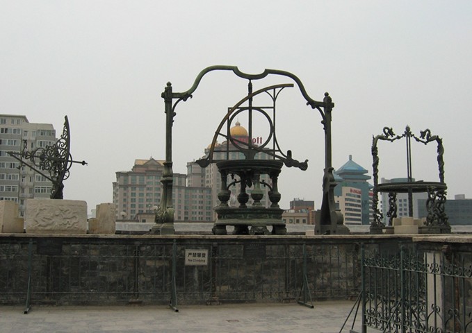 1900年八國聯(lián)軍侵入北京,德、法兩國侵略者曾把這8件儀器連同臺下的渾儀、簡儀平分,各劫走5件。法國將儀器運(yùn)至法國駐華大使館,后在1902年歸還。德國則將儀器運(yùn)至波茨坦離宮展出,在第一次世界大戰(zhàn)后,根據(jù)凡爾賽和約規(guī)定,于1921年裝運(yùn)回國,重新安置在觀象臺上。