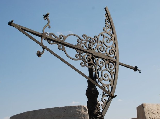 又稱地平緯儀,陳列在北京古觀象臺臺頂西北角。制于康熙八年至十二年(公元1669-1673年),由來華的比利時(shí)傳教士南懷仁監(jiān)制。儀重2483千克,儀高3.611米.主要部件是一個(gè)90度的象限環(huán),環(huán)中間以一條騰云駕霧的巨龍作為裝飾.象限環(huán)豎邊上指天頂,下指地心,橫邊與地平線平行,橫豎兩邊相交于圓心。儀器的背面正中是數(shù)軸,軸兩端是圓的,象限環(huán)固定在數(shù)軸上,可做360度旋轉(zhuǎn)。版權(quán)所有山東聊城聊之旅國際旅行社有限公司,轉(zhuǎn)載必究!東西各有一立柱,立柱上端、下端都有一橫梁相接,梁中心鑿有圓孔用來安裝豎軸。象限環(huán)的圓心,伸出一根橫軸,其上掛窺橫,窺橫下端有立耳,背面設(shè)有夾螺子(現(xiàn)已折斷),旁邊有游表(已遺失)。該儀主要用于測定天體在地平上的或天頂距。1900年曾被法國侵略者掠至法國駐華大使館內(nèi),1902年歸還中國,重新安置在古觀象臺上。