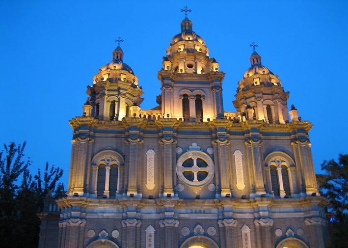 是北京四大天主教堂之一。由意大利籍利類思和葡萄牙籍安文思兩位傳教士創(chuàng)建。明末,2人在四川傳教。清初被清兵虜至北京,在肅王府當(dāng)差,順治十二年(1655),福臨賜給他們一所宅院和一塊空地(即今址),他們即在空地上建筑一座教堂,即北京城內(nèi)第二座圣堂(第一座為南堂),也就是最早的東堂。東堂院內(nèi),中間為天主堂,坐東朝西,共約30間,堂頂立十字架3座,中間大,兩旁小。堂內(nèi)有18根圓形磚柱支撐,兩側(cè)掛著耶穌受難等多幅油畫。堂南、西有教室,東有一院,內(nèi)有花池、平房、樓房,為神父住處。東堂內(nèi)曾保存有多幅宮廷畫師郎世寧繪的圣像,嘉慶十二年(1807年)失火后廢止。1884年,重建羅馬式大堂,在義和團(tuán)運(yùn)動(dòng)中又被燒毀。1904年,用“庚子賠款”重建(法國和愛爾蘭兩國合建),即現(xiàn)在的東堂。東堂院內(nèi),中間為天主堂,坐東朝西,面闊25米,共約30間,坐落在青石基上,堂頂立十字架3座,中間大,兩旁小。堂內(nèi)有18根圓形磚柱支撐,直徑65厘米,柱礎(chǔ)為方形,堂內(nèi)兩側(cè)掛著耶穌受難等多幅油畫。版權(quán)所有山東聊城聊之旅國際旅行社有限公司,轉(zhuǎn)載必究!占地近1萬平方米。為東城區(qū)重點(diǎn)保護(hù)文物。 北京王府井大街的北段正在進(jìn)行改造,原先圍繞神秘教堂的圍墻被拆除,吸引了眾人的目光。灰色的歐式尖頂建筑因其古老而越發(fā)透出神秘,新鋪就的門前廣場在綠樹環(huán)繞中更具濃郁的人文色彩。在周圍的現(xiàn)代化建筑映襯下,王府井天主教堂成了這條大街上的新景點(diǎn)。占地8000多平方米的教堂門前廣場已鋪裝完畢,廣場兩側(cè)設(shè)有座椅可供行人小憩。在教堂南側(cè),占地1000多平方米、王府井大街上最大的綠地馬上就要露面,它將是一座花卉、灌木、喬木立體種植的花園。由于以玫瑰為主,它有一個(gè)好聽的名字——玫瑰園。從玫瑰園流出的一股人造泉水,因?yàn)橐缽V場南側(cè)層疊而下,所以名為“疊泉”。整個(gè)教堂廣場高出地面1米有余,使其更顯與眾不同。據(jù)說,由于完全按西式天主教堂設(shè)計(jì),玫瑰園下還會有一個(gè)葡萄酒窖。