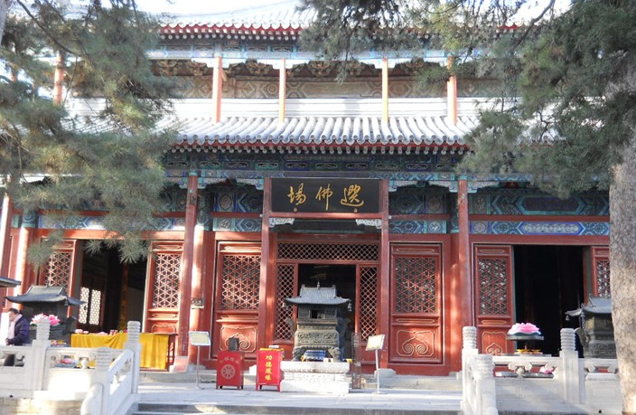 寺院西路大多是寺院式的殿堂,主要建筑有戒壇、觀音殿和龍王殿等等,一層層排列,瑰麗堂皇。戒壇是和尚們受戒之處,臺上有釋迦牟尼像,像前有三把椅子,兩側(cè)各有一長凳,是三師七證的坐處;觀音殿是全寺最高處,上有乾隆手書蓮界慈航,內(nèi)供觀世音菩薩,斂目合什,雋秀端莊。