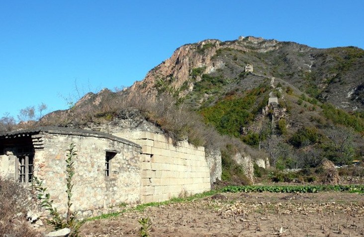 “因地形,用形制塞”是明長城常用的一種辦法,花廠峪口在低洼處筑高墻,應(yīng)用大山作為樊籬,到達了防護結(jié)果。圖為花廠峪南山上的障墻,外側(cè)似狼牙,直上山岳。老嶺在陳舊的燕山東端,山勢峻峭險峻,樹林茂盛,古長城的殘垣沿著山脊連綿向遠方。花廠峪就是老嶺深處的一個山村,村子人家不多,散住在方圓約十幾公里的局限,隔個山梁的就算鄰人,從這家到那家上要走多半個小時。