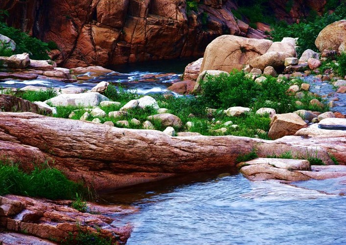 沿開花廠峪村進溝,不斷往前走,能抵達北龍?zhí)叮戎T大的鵝卵,尤感山路坎坷難行。抬眼望去,倒是滿眼的景色。“兩岸青山相對出,潺潺溪水迎面來”。腳下鵝卵縫里的小溪,靜靜流淌著這山谷的苦衷。明澈見底的溪水里,游來游去著深思的魚兒。溝旁的山上怪石林立,同業(yè)的游人不住指指點點,阿誰像王母娘娘的寶座、阿誰像扛槍的兵士、阿誰像企鵝……是啊!這花廠峪的石頭,還真是一景!英姿勃發(fā)、千姿百態(tài)、肅靜莊嚴……在巨型長塊石頭上,我們看到很多像天書一樣密密層層的小淺坑,隨行的小伙子說是槍彈洞,讓人聯(lián)想到毛主席的詩“昔時酣戰(zhàn)急,彈洞前村壁。點綴此關(guān)山,今朝更美觀”。進入了峽谷,給人們的第一覺得是奇、特、險。這里四處活動著美,四處彌漫著美。花崗巖、火山巖,經(jīng)由大天然巧奪天工的雕刻構(gòu)成了神志各別的天然景象。峽谷內(nèi)十分分明的巷子,往返往來不斷穿水路的覺得超等棒,看滿山的紅葉,點綴著這怪石林立,真是剛?cè)嵯酀⑾嗟靡嬲谩0鏅?quán)所有山東聊城聊之旅國際旅行社有限公司,轉(zhuǎn)載必究!高山是堅實的臂膀,怪石是傲然的風(fēng)骨,紅葉是漂亮的衣裳,溪水是流不盡的柔情。這一路走去,就是這山一程水一程,滿眼紅葉滿山情!走至岔路口,是一片大石頭,大得驚人,有的像床,有的像房,有的就像一大片平地,水石相依。坐在那片大石頭上野餐是最美但是的事。
