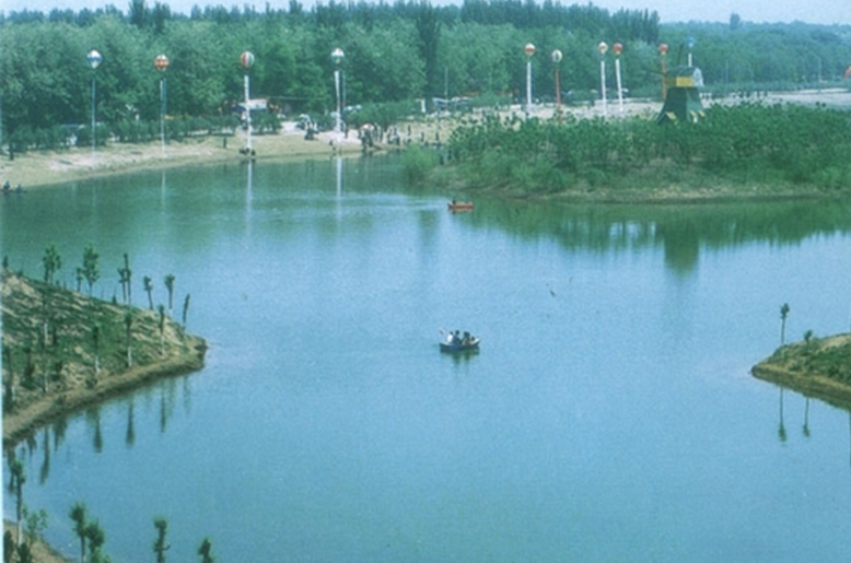 愉湖風光區(qū),突出藍天、碧水、綠地的主題,以大片水面和大面積的森林景觀相映成趣。建有360畝的 沐浴庫區(qū),筑有假山、湖心島,配有游船、皮滑艇、動力風車等游樂設施。栽植榆、五角楓、金絲柳等觀賞植物28種17萬株,栽植草皮5.1萬平方米。疏林密地,青少年活動區(qū),水上風光區(qū),別墅區(qū),休療區(qū)等。與對餐交通干道臨南路融為一體,以大面積的水面和樹林塑造景觀。