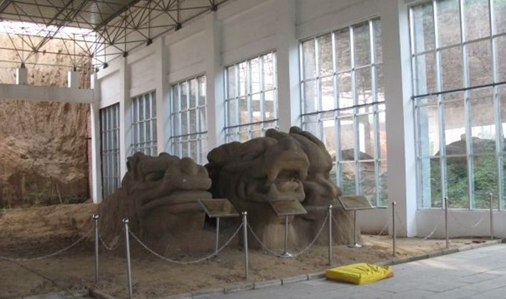專門用來(lái)保護(hù)古石龍的龍文化保護(hù)館于今年夏天剛剛建成,該館長(zhǎng)50米,寬40米,高8米,依臥龍崗而建,剛好可以把發(fā)掘出來(lái)的這十條古石龍保護(hù)起來(lái)。