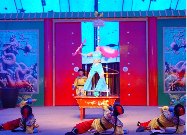 以展示集現(xiàn)代聲、光、電及各種高科技技術于一體的大型綜藝性雜技晚會。