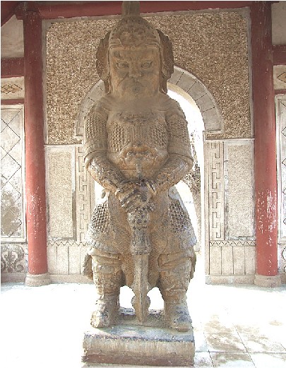 南皮文保所院內(nèi),有一金剛亭。亭內(nèi)二金剛,青石雕刻,線條細(xì)膩,狀貌威武,是有名的石雕精品。 過去南皮城內(nèi)有一座名冠全縣的著名禪林——興化寺,它坐落在城內(nèi)東北角,位于現(xiàn)在土產(chǎn)公司家屬院一帶。此寺始建年代不詳,一說為北魏,一說為唐代,尚待進(jìn)一步考證。重修是在明朝弘治七年(1504)。版權(quán)所有山東聊城聊之旅國(guó)際旅行社有限公司,轉(zhuǎn)載必究!據(jù)說城東唐房里有個(gè)叫湯澄的人樂善好佛,曾游于興化寺,見敗垣殘壁一片荒涼,遂親自捐資,并向大戶募化,志在重修,數(shù)載始成。興化寺規(guī)模宏偉壯麗,成為南皮著名寺院。 興化寺以石金剛殿為山門。兩個(gè)金剛相向分立于殿之左右,下有石座相連,連座高一丈二尺,圍可合抱,雕刻玲瓏。金剛神色肅穆,身披鎧甲,狀似武將。左者胸前橫锏,雙手合十,右者雙手扶锏拄地。每像一只鼻孔。相傳為唐代所雕刻,建寺之初,從寺前水坑挖得,置于山門之內(nèi)。 寺內(nèi)主建筑為大慈閣,中曾羅列十八羅漢,正中為千手千眼銅佛,上懸“慈云永護(hù)”匾額,為清代狀元張之萬(wàn)題撰。左懸“福佑臺(tái)山”匾,版權(quán)所有山東聊城聊之旅國(guó)際旅行社有限公司,轉(zhuǎn)載必究!右懸“登臨近日”匾,均未署名,據(jù)說是明人手筆。閣內(nèi)楹聯(lián)有二:一為清代道光時(shí)期南皮一縣令所題“我只有一片婆心,抱個(gè)孩兒與你;汝須行萬(wàn)般好事,積些功德與他”。二為南皮孝廉張之京題撰:“金剛怒目,菩薩低眉,一鼻孔呼吸相通,證果在三生石上;閣建大悲,寺名興化,千眼中光明普照,法身現(xiàn)百尺樓頭。” 最上層神龕中,有菩薩一尊。上懸光緒十四年九月御制“道達(dá)人天”匾。閣前關(guān)帝廟,廟中有關(guān)羽銅像,綠銹斑駁,氣象凜然。 清末以來,連年戰(zhàn)亂,以至寺毀閣塌,解放后僅存石金剛兩尊,河北省將其列為省重點(diǎn)文物,1964年于興化寺舊址前建亭保護(hù)。 興化寺的巍峨壯麗和旺盛香火,只能從所存的石金剛中去想像了,而南皮石金剛到底什么時(shí)候雕刻?為什么出自水坑?也留下了千古謎團(tuán)。
