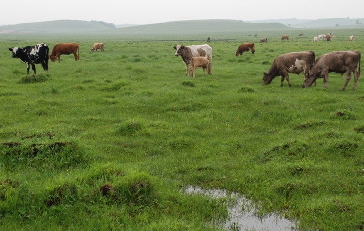 為一條南北走向的長溝,因其位于原場部的北面,所以當?shù)厝肆?xí)慣上稱其為北溝,北溝橫亙于軍馬場南北,綿延十多公里,這里是馬場境內(nèi)次生林種類較多的地方,山坡上長滿了白樺樹,溝底是塘柳夾雜著山葡萄樹、山丁樹、野山楂樹和槐樹、榆樹等。北溝是馬場允許倫牧的區(qū)域,所以“風(fēng)吹草低現(xiàn)牛羊”的美景只有在這里才能看到。因其是南北走向,且地形富于變化,加之藍天、白云、牛羊、碧草,非常適合早晚側(cè)、逆光取景拍攝,是出“片子”的高頻地區(qū),是攝影家必到之處