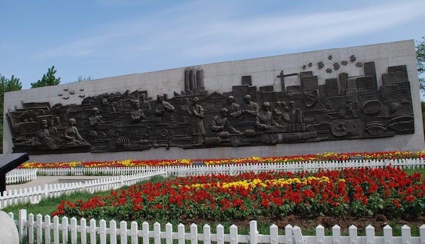 如今勞動公園圍墻早已拆除,可以從臨街的任何一處進入園內(nèi),但還有過去約定俗稱的東門、南門、西門、西北門和東北門,其中東門為勞動公園的正門。東門斜對面是衛(wèi)工明渠,渠上建有勞動新橋。橋兩側(cè)的衛(wèi)工街上擺放著工業(yè)魔方、鼎、機床、鑄、沙漏•玻璃等取材于鐵西工業(yè)元素的雕塑。東門園內(nèi)建有五一廣場,廣場北側(cè)是題目為“勞動創(chuàng)造未來”的遼寧省首座勞模浮雕。整座浮雕高4.90米,長20.06米,厚0.8米,主體畫面由高浮雕鑄銅制成。采用不規(guī)則、凸凹自然式的雕塑風格,突出重點人物細部的刻畫,表現(xiàn)建國以來勞模在沈陽市各個歷史階段,勞動和創(chuàng)造所展現(xiàn)的生動畫面,版權(quán)所有山東聊城聊之旅國際旅行社有限公司,轉(zhuǎn)載必究!其中有沈陽籍的“張成哲”、“李湘君”等。勞模浮雕北側(cè)就是杏花村、杏花村西北連接的是趣園、趣園和南十二路中間的樓群是勞動公園的辦公區(qū)。
