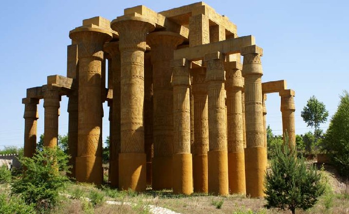 卡納克神廟是埃及的雄偉高大的建筑群。公元前1870年,埃及法老下令修建了一片廟宇群,它由20多座神廟組成。它是法老敬獻給太陽神和月亮神的最高禮物,經(jīng)過三千多年的風(fēng)雨侵蝕,現(xiàn)已殘缺不全。這些石柱是遺址中具有代表性一部分,石柱上的圖紋和象形文字,反映了當(dāng)時古埃及人勞動、生活、敬神等情景。