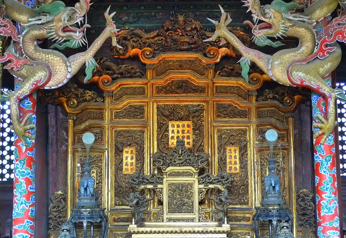 崇政殿:又稱“金鑾殿”,通稱“正殿”,是皇太極處理政務(wù)、接見(jiàn)使臣的場(chǎng)所,清代歷朝皇帝東巡祭祖時(shí)也在此聽(tīng)朝理政。面闊五間,綠剪邊黃琉璃瓦,單檐硬山頂,前后有出廊,圍以石護(hù)欄。殿內(nèi)為徹上明造,和璽彩繪,寶座后有貼金龍扇屏風(fēng),旁為貼金蟠龍柱。殿外庭院左右有飛龍閣、翔鳳閣、東七間樓和西七間樓。