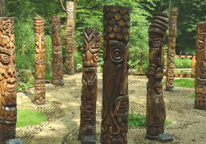 薩滿圖騰林,一共有 15 根圖騰柱,上面雕刻的神像形態(tài)各不相同,因為薩滿教是原始的多神教, 是在“萬物有靈”的觀念支配下所形成的一種多神崇拜。 滿族人信仰的神靈很多,但是薩滿教沒有廟宇和神祠,也沒有專職的掌教和祭主等神職人員。信奉此教的人們,在族人中自發(fā)形成一位“察瑪”,主管每次祭祀天地、山神、土地和祭祖、許愿等重大活動。 神靈,則多用木雕或繪畫的形式體現(xiàn)。