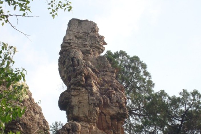 在王老鑿溝里面有一座很高也很陡的山,叫四楞子山,當(dāng)年王老鑿就是率領(lǐng)眾人堅(jiān)守在這四楞子山上跟日本侵略軍對(duì)峙的。在山的后面,石崖下有個(gè)天然石洞,當(dāng)年王老鑿就是在這洞里貯存米面和水的。