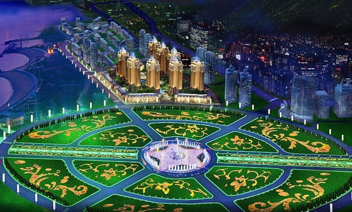從廣場中央大道中心點往北500米是會展中心;往南是百年城雕廣場,500米外是藍色的大海。中央大道紅磚鋪地,兩側(cè)綠草如茵,每隔20米設(shè)一個航標燈造型的石柱燈,象征著中國正面向大海,走向世界。