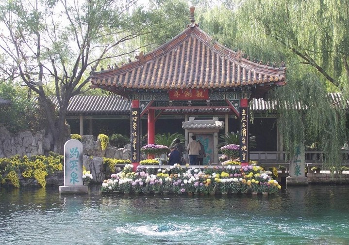泉水一年四季恒定在攝氏18度左右,嚴冬,水面上水氣裊裊,像一層薄薄的煙霧,一邊是泉池幽深波光粼粼,一邊是樓閣彩繪,雕梁畫棟,構成了一幅奇妙的人間仙境。