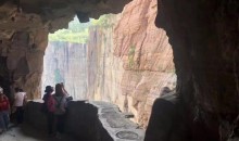 位于郭亮村西北3000米處的半山腰間,洞口5米見方,扶攔桿攀躍石階才能入洞,洞內(nèi)鐘乳石顏色淡粉,晶瑩明亮,石柱石筍粗壯盤旋,造型逼真,在100米處的石壁上,一組鐘乳石神像猶似十八羅漢。洞內(nèi)有多處分叉的小洞,洞潭相連,泉聲叮咚,沿照明燈線,可徒步行至200米處,再往里走,需自帶燈具火把。