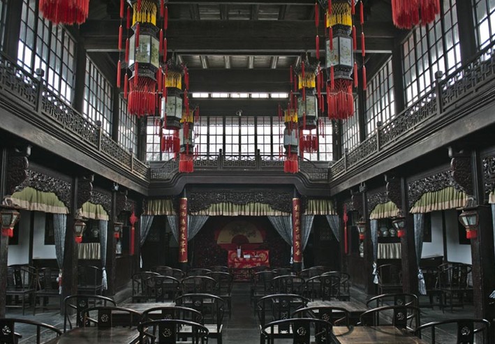 進(jìn)入大門即是一條寬闊的長長的甬路,構(gòu)成大院的中軸線,甬路上有形式各異、建筑精美的5座門樓。從南向北門樓逐漸升高,寓意為“步步高升”,而每道院門都是3級臺階,寓意為“連升三級”。道路東西兩邊各有五進(jìn)院落。東院為內(nèi)宅,有內(nèi)賬房、候客室、書房、鴛鴦廳、內(nèi)眷住房等,現(xiàn)在陳列著楊柳青年畫、泥塑、木雕、磚雕及天津民俗,細(xì)細(xì)觀覽,十分有趣。西邊的院落為接待貴賓的大客廳、暖廳、大戲樓、祠堂等,現(xiàn)已基本恢復(fù)了原有陳設(shè)。與內(nèi)宅相比,這里建筑用材更為考究,做工更為精細(xì)。大客廳院內(nèi)有高近5米的大天棚,可擋風(fēng)避雨,當(dāng)年從鎮(zhèn)外很遠(yuǎn)就能看到。版權(quán)所有山東聊城聊之旅國際旅行社有限公司,轉(zhuǎn)載必究!大戲樓寬敞華麗,可供200人聽?wèi)蝻嬔纾侨A北民宅中最大的戲樓,京劇名家孫菊仙、譚鑫培等都曾在此獻(xiàn)藝,其中花靈格扇全部是楠木原色,精雕細(xì)刻,極為華貴。西院的西邊還有三進(jìn)院落,是私塾先生教書及其他的專用房。