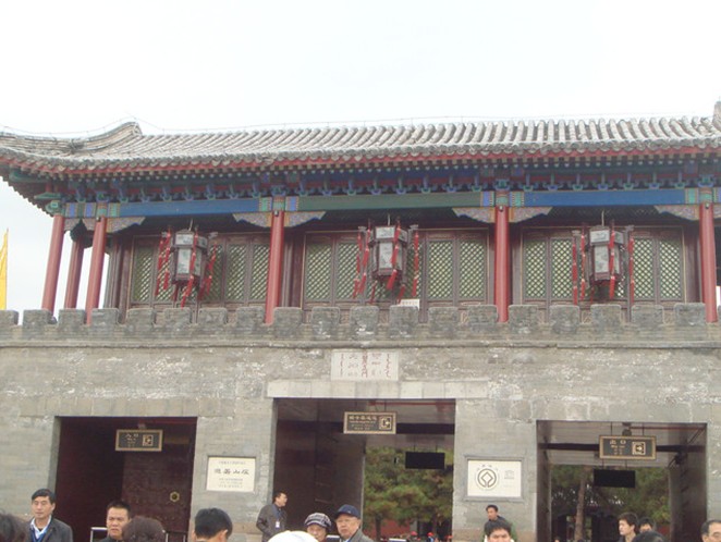 麗正門既是避暑山莊的正門,也是正宮的正門,建于乾隆十九年(1754年)。它是個(gè)重臺(tái)城門,有三個(gè)長方形拱門入口,重臺(tái)上建有城閣三間。門前列石獅一對(duì),左右立下馬碑各一,迎面建有30米長的紅照壁。布局規(guī)格嚴(yán)整,風(fēng)格質(zhì)樸秀麗,為避暑山莊的乾隆三十六景之首。麗正門既是避暑山莊的正門,也是正宮的正門,建于乾隆十九年(1754年)。