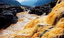 黃河壺口瀑布位于宜川縣城以東35公里,吉縣城西45公里處的晉陜峽谷黃河河床中,已成為世界上最大的黃色瀑布,因其氣勢雄渾而享譽中外。 壺口瀑布,是由于黃河流至壺口一帶,兩岸蒼山夾峙,把黃河水約束在狹窄的黃河峽谷中,河水聚攏,收束為一股,奔騰呼嘯,躍入深潭,濺起浪濤翻滾,形似巨壺內(nèi)黃水沸騰。巨大的浪濤,在形成的落差注入谷底后,激起一團團水霧煙云,景色分外奇麗。站在河邊觀瀑,游人莫不唱起“風在吼,馬在叫,黃河在咆哮”這威武雄壯的歌聲。