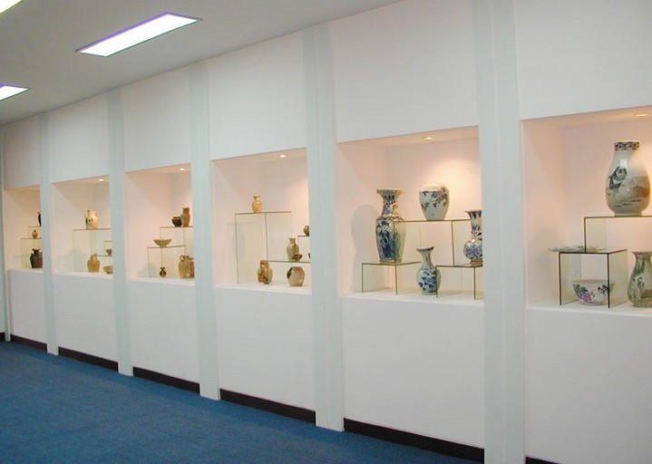 唐山陶瓷陳列廳位于陶瓷公司院內(nèi),是唐山日用及藝術(shù)陶瓷產(chǎn)品的縮影。展廳面積1000平方 米,展品9000余件。日用瓷以玫瑰牌、白玉牌、玉蘭牌較為著名,品種有造型各異的餐具、茶具、咖啡具;藝術(shù)瓷以鐵紅金圈結(jié)晶釉最為獨特,噴彩座盤、雕金加彩作品亦各具千秋。