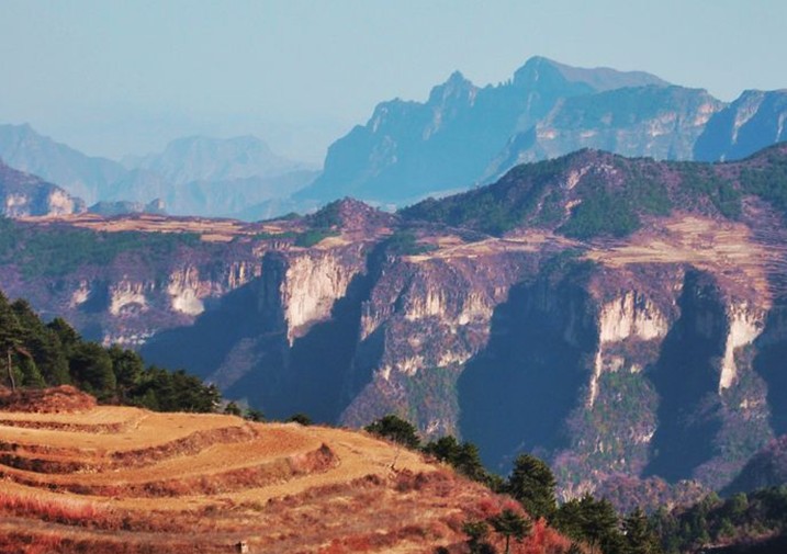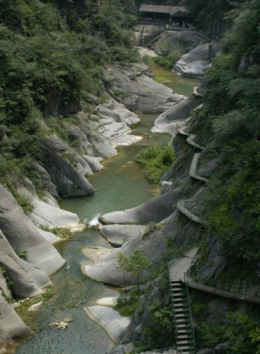 《太平御覽》講:“抱犢山,在上黨東南,高七十丈。” 《隋圖經(jīng)》則說(shuō):“抱犢山四面危絕。”公元4世紀(jì)初時(shí),我國(guó)兩晉時(shí)期著名的道教神學(xué)奠基人葛洪(自號(hào)抱撲子)曾遍游天下名山。他對(duì)太行懷抱中的抱犢山評(píng)價(jià)甚高,以為“稱天下名者,南有武夷,北有抱犢。”把紫團(tuán)山與武夷山相提并論,這對(duì)當(dāng)代人來(lái)講,無(wú)論如何是無(wú)法想象的事情。因?yàn)榻裉斓淖蠄F(tuán)山其名聲不但已遠(yuǎn)不如聲名顯赫的南國(guó)武夷,僅以武夷九曲溪那樣秀麗可人且可乘舟游弋的水景而言,即使走遍今日太行峽谷中的每個(gè)角落,恐怕也難以覓得一處了。然而,再把話說(shuō)回來(lái),你如果真是一個(gè)對(duì)紫團(tuán)山的歷史有所了解的人,特別是對(duì)它的地形地貌做過(guò)實(shí)地踏勘的人,你則會(huì)毫無(wú)猶疑的確信,確信葛洪在1500余年前所說(shuō)的那一番話不但語(yǔ)出事實(shí),而且語(yǔ)焉甚確,毫無(wú)夸張。現(xiàn)在武夷九曲溪水及其所經(jīng)山峽長(zhǎng)度約近8公里,歷史上可能更要綿長(zhǎng)些;但紫團(tuán)山峽中的河床谷地其長(zhǎng)度絕不在20公里以下。根據(jù)歷史上遺存地貌的觀察分析,古代武夷九曲溪和紫團(tuán)山峽流景觀的主要區(qū)別應(yīng)該在于,武夷九曲溪河谷趨于平緩開(kāi)闊,而紫團(tuán)峽流由于峽身緊束,區(qū)段落差極大,所以后者比前者肯定會(huì)流速迅疾,景色險(xiǎn)奇而壯觀。在溪流盤(pán)曲環(huán)繞、岸側(cè)景色變幻無(wú)窮這一點(diǎn)上,兩處名勝則是相似相近的。