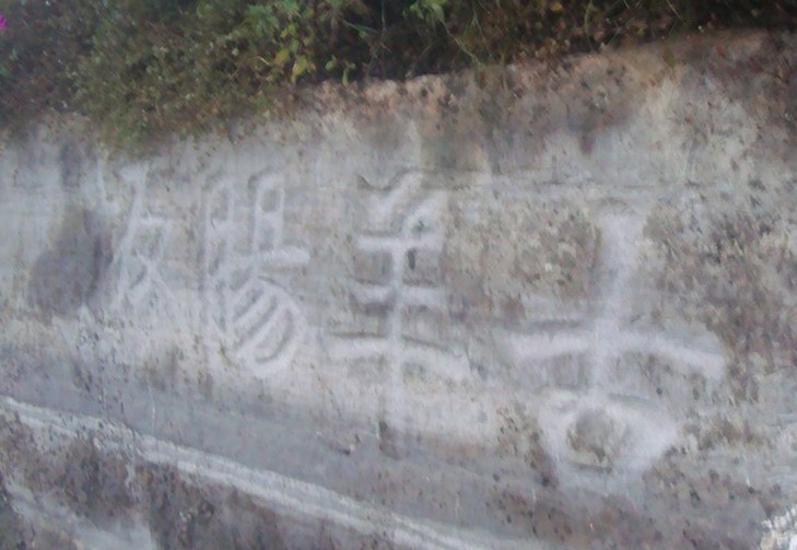 “古羊腸坂”題刻:在古碗城西南約50米,坂道西邊的二級(jí)峭壁上,高0.8米,寬3米,有清同治間摩刻的“古羊腸坂”四字,每字0.5米見方。