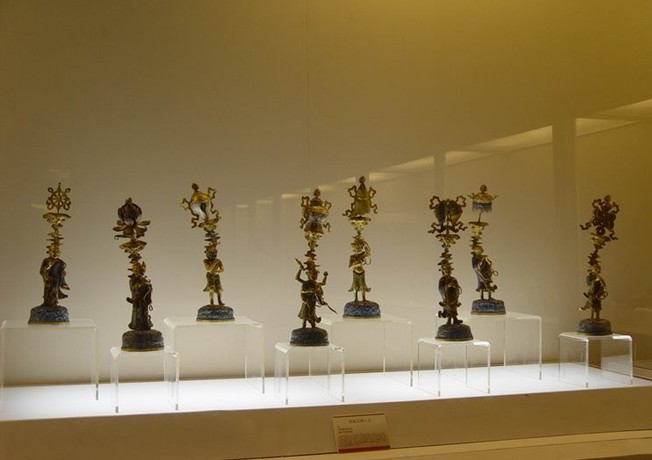簡介:人物形象神態(tài)各異,造型生動。表面涂金。