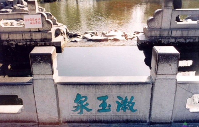 漱玉泉,金《名泉碑》、明《七十二泉詩》、清《七十二泉記》均著錄。在柳絮泉東側(cè),為一長方石砌水池,周飾石雕欄桿。池內(nèi)北壁鑲嵌“漱玉泉”刻石,為濟(jì)南當(dāng)代書畫家關(guān)友聲1956年書寫。“漱玉”一名由“漱石枕流”(《世說新語•排調(diào)》)一詞演化而來。相傳,宋代杰出詞人李清照曾于此掬于梳妝,填詞吟詩,她的作品《漱玉詞》即以此泉命名。