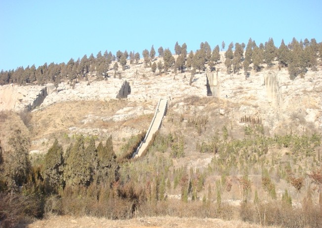 陵墓均為依山鑿洞,除東起第一座外,其余四座都于1970年被發(fā)掘。陵墓形制、結(jié)構(gòu)基本相同,其中西起第三座最有代表性,墓縱深全長(zhǎng)72.1米,最寬處24.3米,最高處18.4米,前為墓道,長(zhǎng)37.5米,寬4.6—4.8米,最高處18.4米,由人工自山表下鑿山石而成,葬后以土回填。墓道北端向北鑿石為洞,依次為墓門、甬道、前室、前室四耳室、后室、石龕。墓門寬2.2米,高2.5米,深4.5米,以十九塊長(zhǎng)方形石塊堵塞。甬道長(zhǎng)17米,北端東西有耳室,左右各二室。前室東西8米,南北6.3米,高4.2米,后室置棺槨,長(zhǎng)寬各6.5米,高4.6米,北壁鑿刻石龕。版權(quán)所有山東聊城聊之旅國(guó)際旅行社有限公司,轉(zhuǎn)載必究!為排掉山體滲水,墓底鑿有水道自后室排向東車馬室的自然山縫。整墓鑿石2900多立方米。