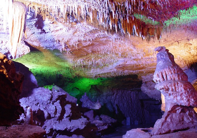 塵封百萬年的“天然地下畫廊”位于九頂蓮花山麓,全長6600米,一期開發(fā)1600米,由全國著名學(xué)者、國畫大師范曾親筆題寫洞名,被眾多專家譽(yù)為“江北第一溶洞”。洞內(nèi)鐘乳遍布,石筍林立,108處主要景觀形態(tài)各異,令人嘆為觀止。“北國風(fēng)光”、“宇宙奇觀”、“南國風(fēng)情”、“海底世界”四幅各具特色的巨幅畫卷,被洞內(nèi)數(shù)道石門相隔,自然天成。毛澤東詩詞“北國風(fēng)光,千里冰封,萬里雪飄……”是對“北國風(fēng)光"畫卷的生動(dòng)寫照;過一道石門簾,便從銀裝素裹的北國風(fēng)光進(jìn)入了世人驚嘆的“宇宙奇觀”畫卷,天鍋、天河、天橋、牛郎織女等爍爍繁星讓人置身于廣袤的宇宙空間;又一石門過后,版權(quán)所有山東聊城聊之旅國際旅行社有限公司,轉(zhuǎn)載必究!便是秀美的“南國風(fēng)情”畫卷,奇山、怪石、沙灘、小橋、流水組成了一幅幅江南美景;經(jīng)過“別有洞天”進(jìn)入“海底世界”畫卷,神龜、海象、游龍等動(dòng)物,天瀑、玉峰、水晶宮等景致,惟妙惟肖,目不暇接。整個(gè)畫廊氣勢磅礴,石乳、石筍、石柱、石幔、石簾、石花、石旗、石葡萄、鵝管、飛瀑等各類象形。
