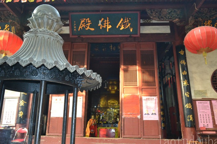 鐵佛殿內(nèi)有鐵佛一尊,稱“阿彌陀佛”,疊掌跏趺坐于蓮花臺上,外披泥貼,法相莊嚴。鐵佛高5.3公尺,頭部實心,身軀空心,人立其肩上,伸手摸不到頭頂,估計重量達十萬斤以上。清乾隆時陳云程《閩中摭聞》載,版權(quán)所有山東聊城聊之旅國際旅行社有限公司,轉(zhuǎn)載必究!鐵佛殿前柱子兩側(cè)刻有明末舉人曾異所撰楹聯(lián):“古佛由來皆鐵漢,凡夫但說是金身。”