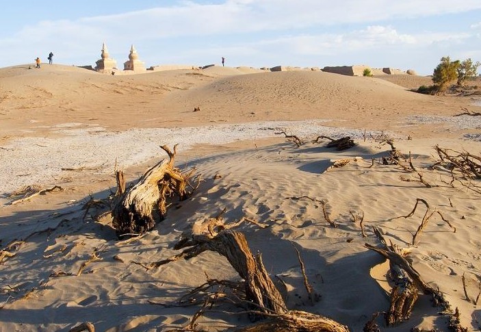 黑城市北方的西夏國(guó)古都,名叫亦即乃,就是黨項(xiàng)語(yǔ)的黑水城黑城平面為長(zhǎng)方形,現(xiàn)今城墻仍高聳地表達(dá)10米城內(nèi)的街道和墻壁及整齊排列的木頭檐柱,從流沙中露出。城外西南方,一座穹坊廬式頂、壁龕樣式的禮拜堂完整地矗立于荒野,土坯建成的圓頂清真寺尚未被風(fēng)沙掩埋。城外西南一座禮拜堂完整屹立于荒野,近代有不少人來(lái)多次探寶,掠奪走了大量的珍貴文物,在黑城出土的不少珍貴的歷史材料中,在出土的《番漢合時(shí)掌中珠》西夏文字典中,人們解讀了西夏文。給后人更完整的詮釋了神秘的西夏國(guó)。該城建于公元九世紀(jì)的西夏政權(quán)時(shí)期。公元1372年明朝大將馮勝攻破黑城后遭廢棄。至今城內(nèi)還埋藏著豐富的西夏和元代等朝代的珍貴文書(shū)。近年來(lái),由于周邊地區(qū)沙化嚴(yán)重,流沙從東、西、北三面侵蝕黑城,許多遺址已埋于沙下。文物保護(hù)工作者呼吁有關(guān)部門盡快行動(dòng)起來(lái),搶救性保護(hù)黑城遺址。黑城遺址的城墻西北角頂部筑有5座佛塔,保存至今尤為珍貴,但同樣面臨風(fēng)蝕坍塌的危險(xiǎn)。