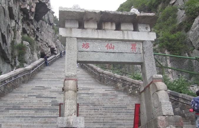 升仙坊位于山東省泰山中路緊十八盤的起始處,為兩柱單門式石坊,額題楷書“升仙坊”。此處山勢陡峻,懸崖峭壁,上臨岱頂天庭,咫尺仙境,似有飄然升仙的意境,故名“升仙坊”。游人至此小憩,每每浮想聯(lián)翩。回視山下,常有騰身云霄之感,舉首仰望,南天門近在眼前,奮力攀登,岱頂在望。